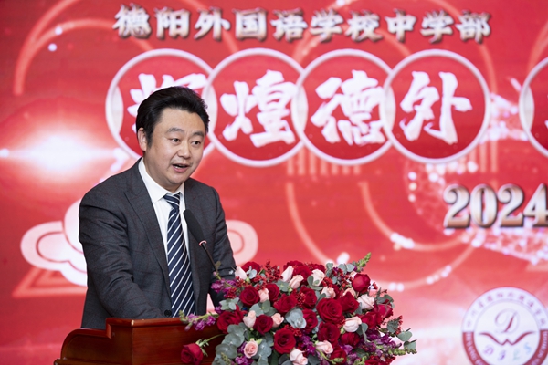 何軍在講話中回顧了過(guò)去一年德陽(yáng)外國(guó)語(yǔ)學(xué)校在教師隊(duì)伍、教學(xué)活動(dòng)、校園文化等方面取得的成績(jī),對(duì)學(xué)校在2024年的發(fā)展表達(dá)了美好祝愿。