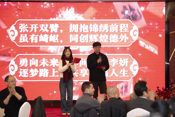 團(tuán)拜會(huì)現(xiàn)場(chǎng),蘇華及學(xué)校理事會(huì)成員、學(xué)校領(lǐng)導(dǎo)向中學(xué)部教職工送上春節(jié)祝福,共賀佳節(jié)。教職工自編自演、接地氣的精彩節(jié)目營(yíng)造出濃厚的節(jié)日氛圍。
