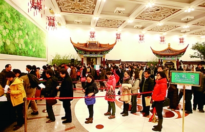 3月1日,大批參加十二屆全國人大一次會(huì)議采訪報(bào)道的記者聚集在人民大會(huì)堂澳門廳排隊(duì)等候領(lǐng)取證件。