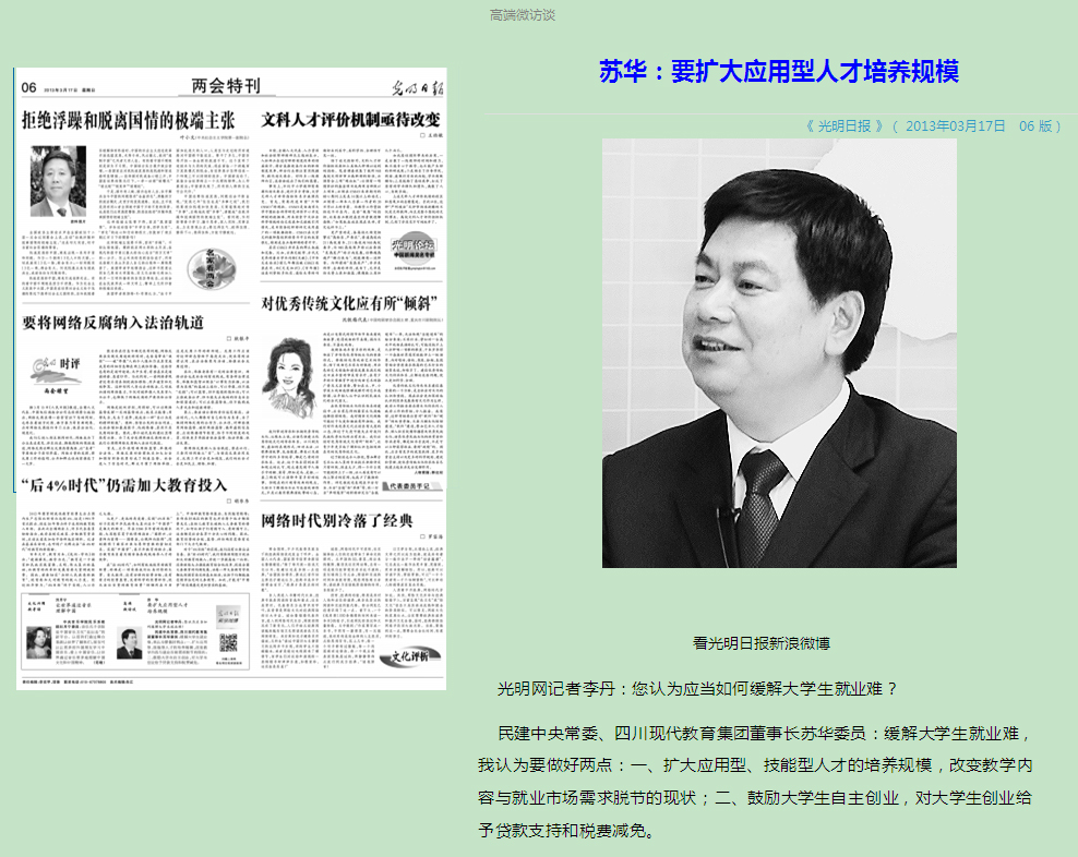 【光明網(wǎng)】全國政協(xié)委員蘇華希望擴(kuò)大應(yīng)用型人才培養(yǎng)規(guī)模